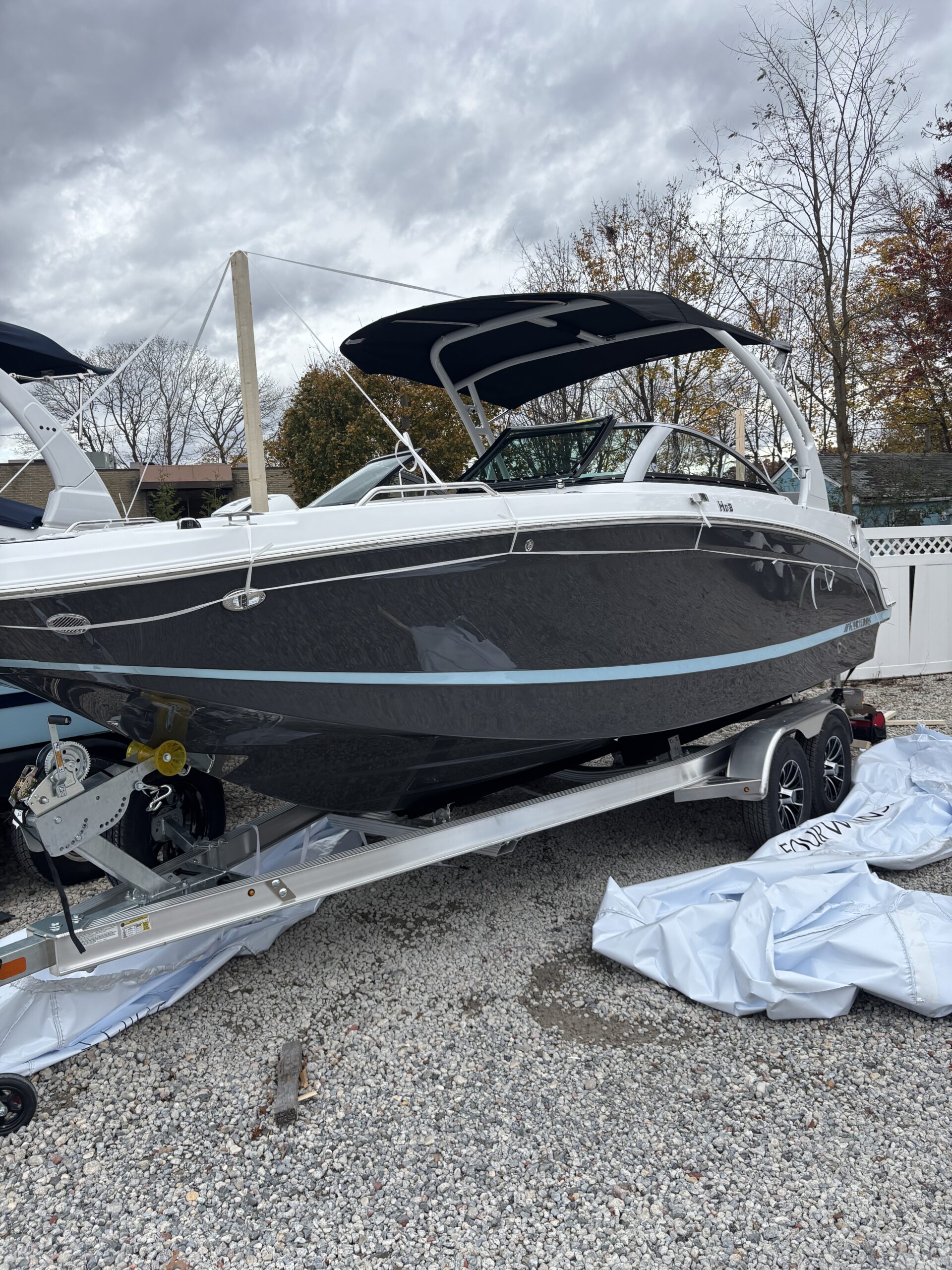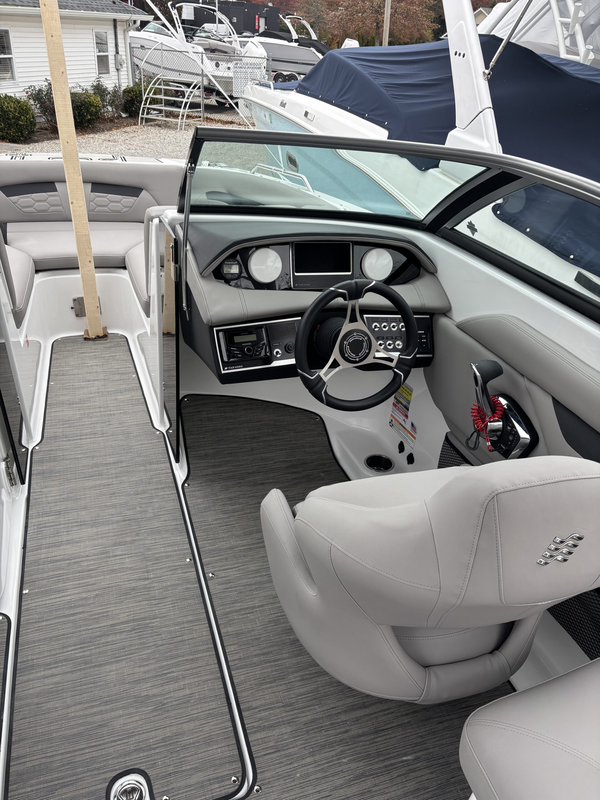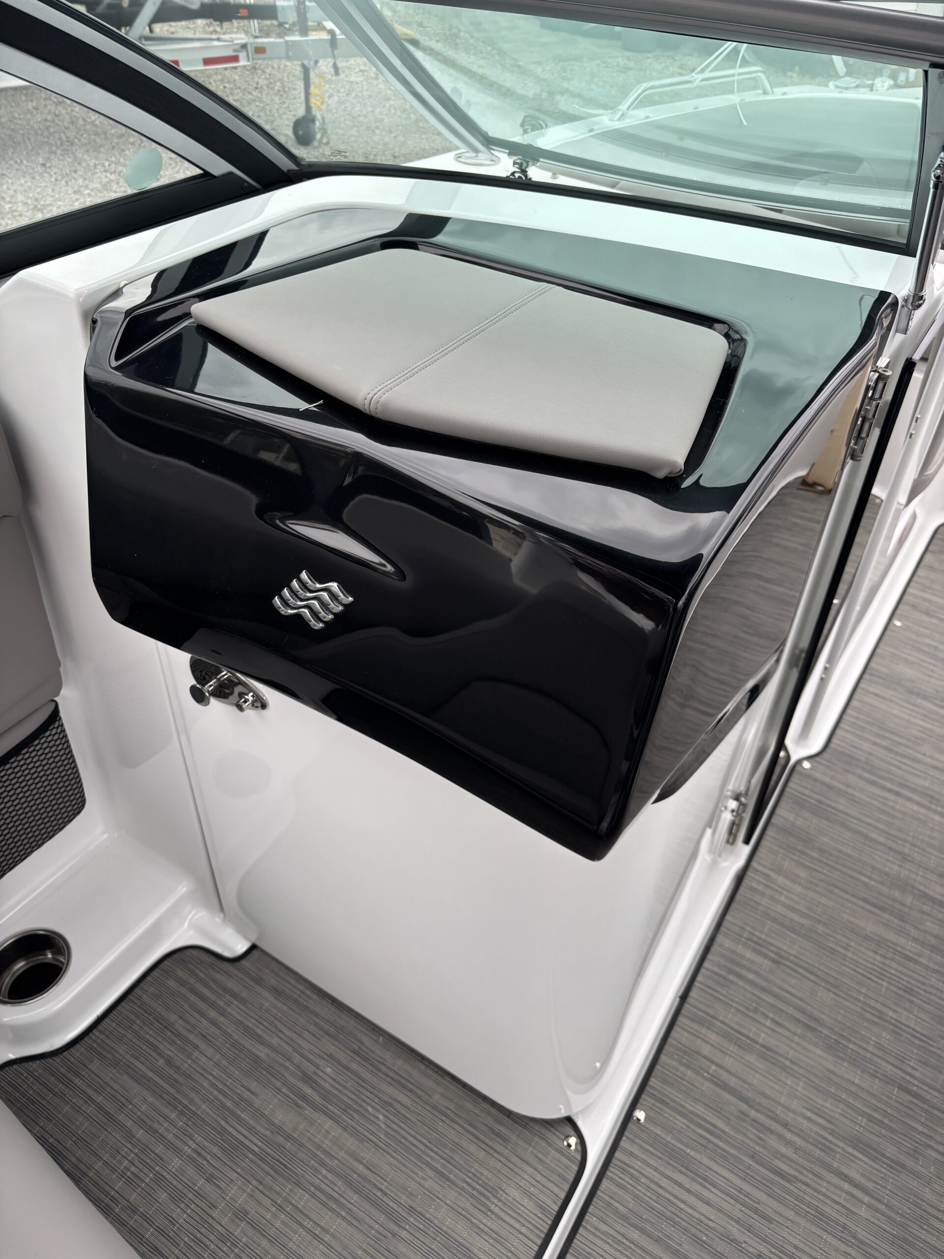 WAKE TOWER, WHITE W/BLACK CANVAS TRANSOM DOOR * TRIM TABS LED UNDERWATER LIGHTING DUAL BATTERY w/SWITCH