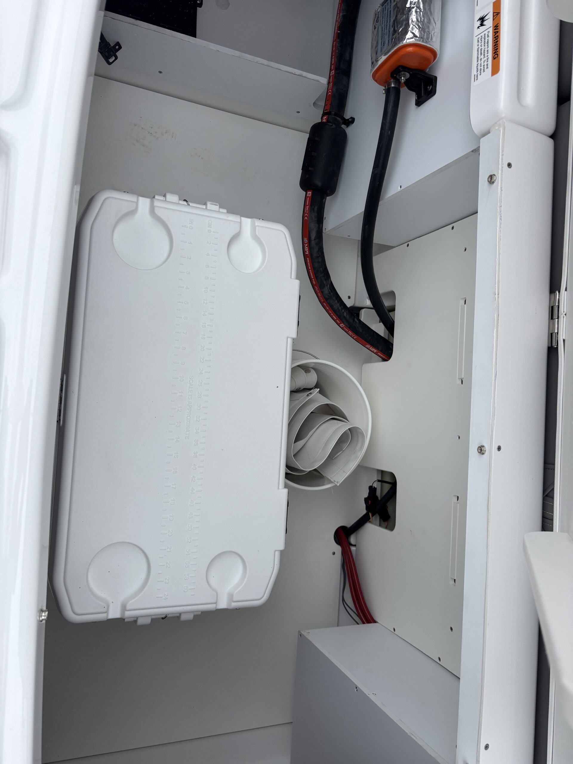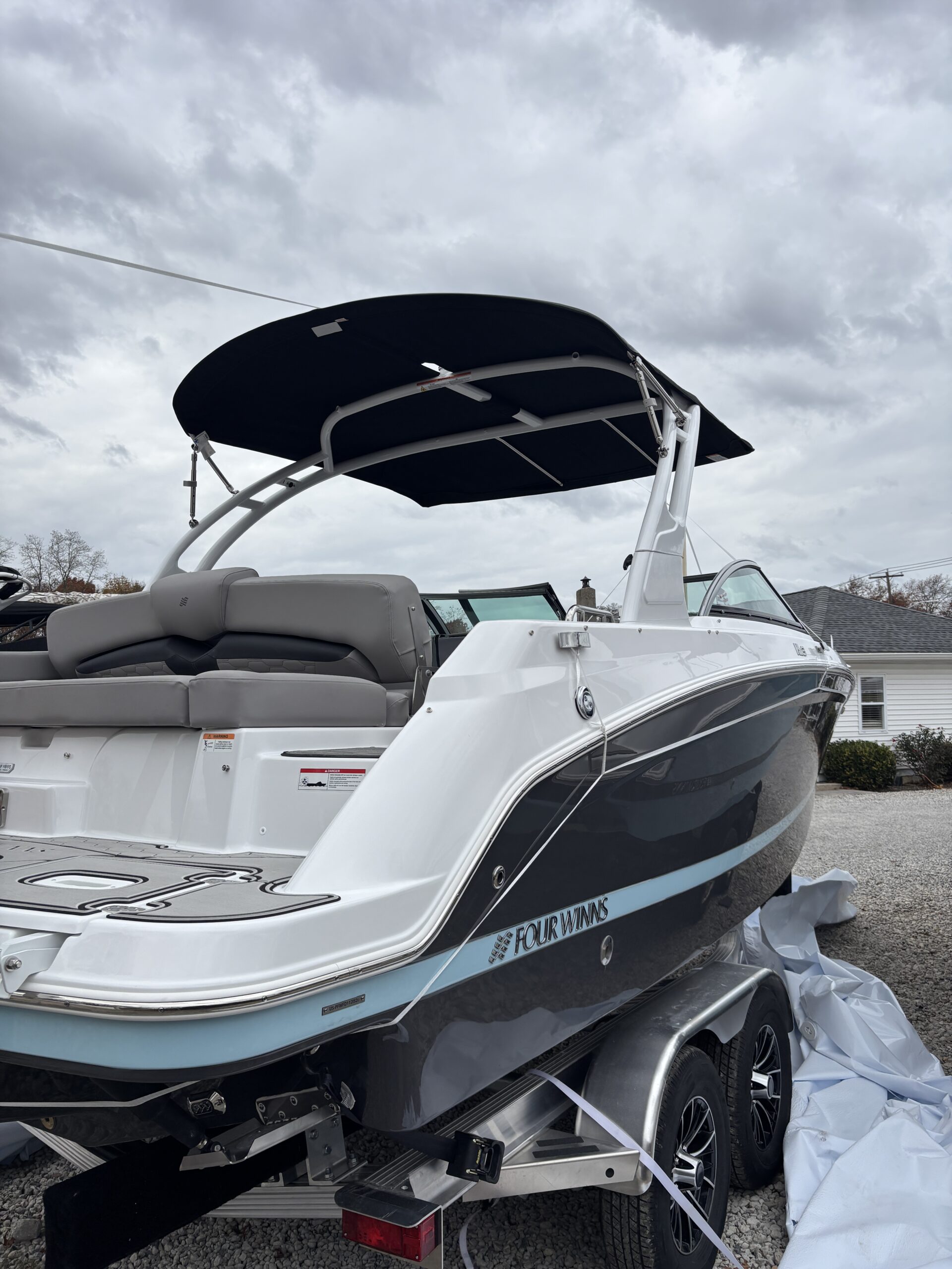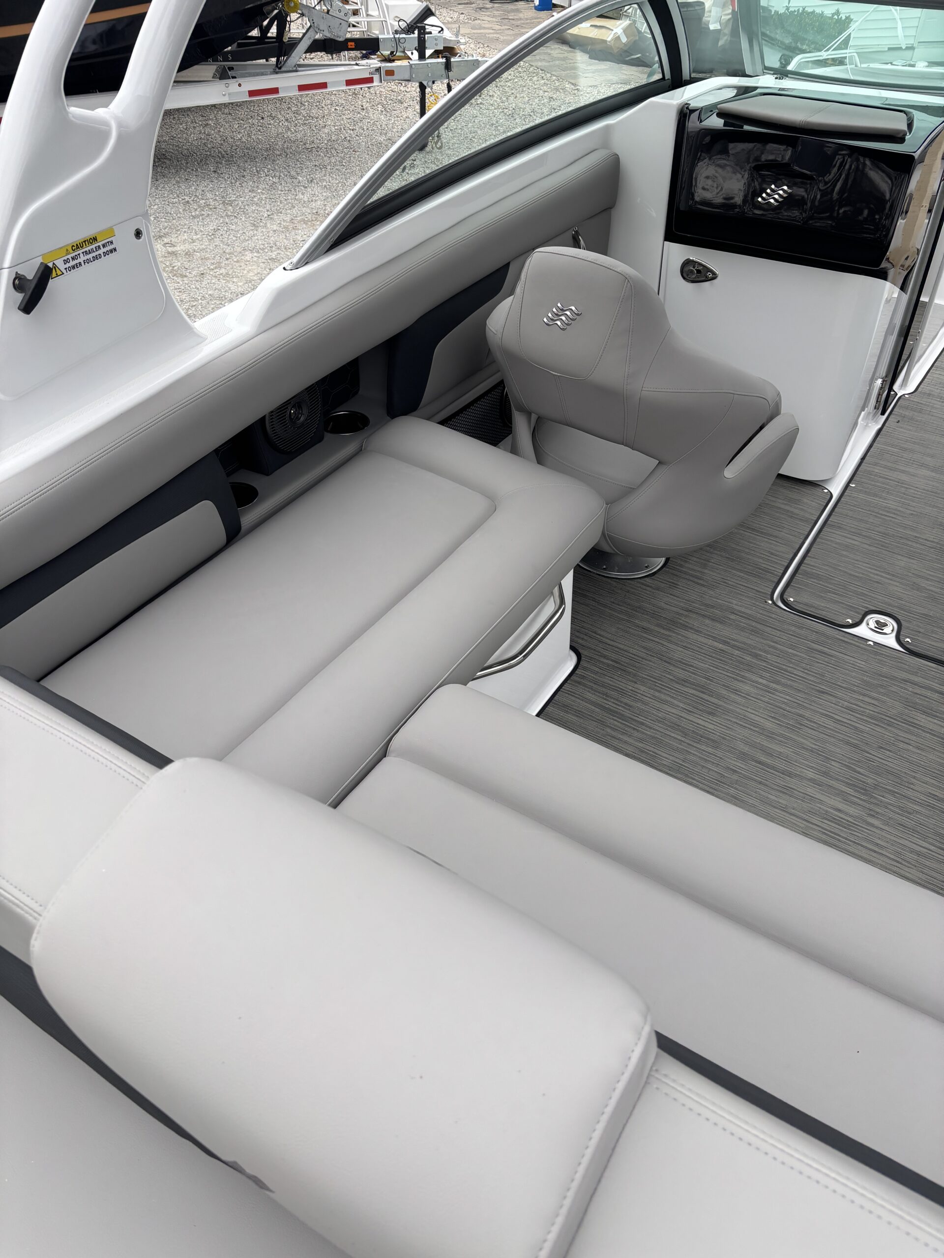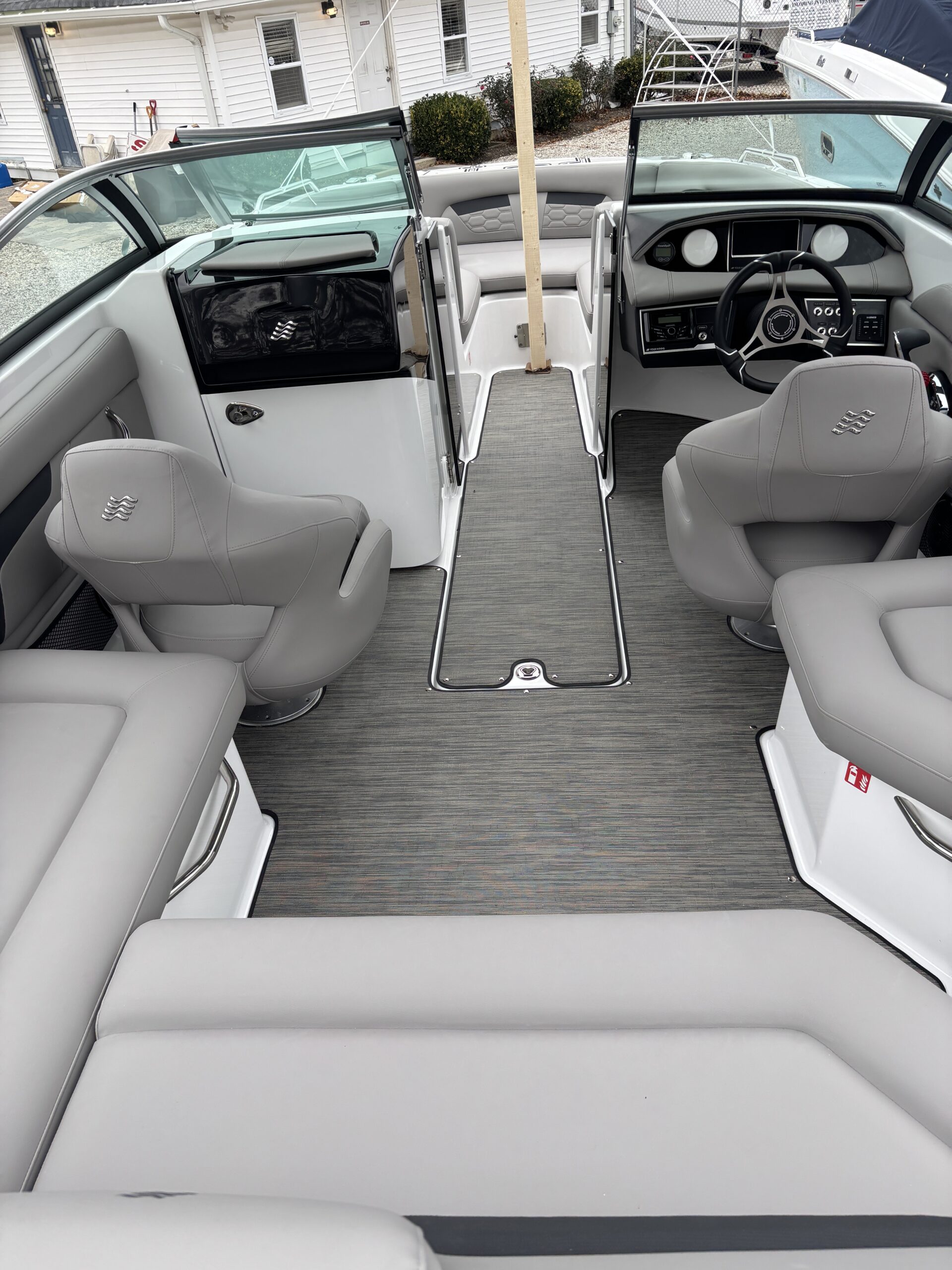 WAKE TOWER, WHITE W/BLACK CANVAS TRANSOM DOOR * TRIM TABS LED UNDERWATER LIGHTING DUAL BATTERY w/SWITCH