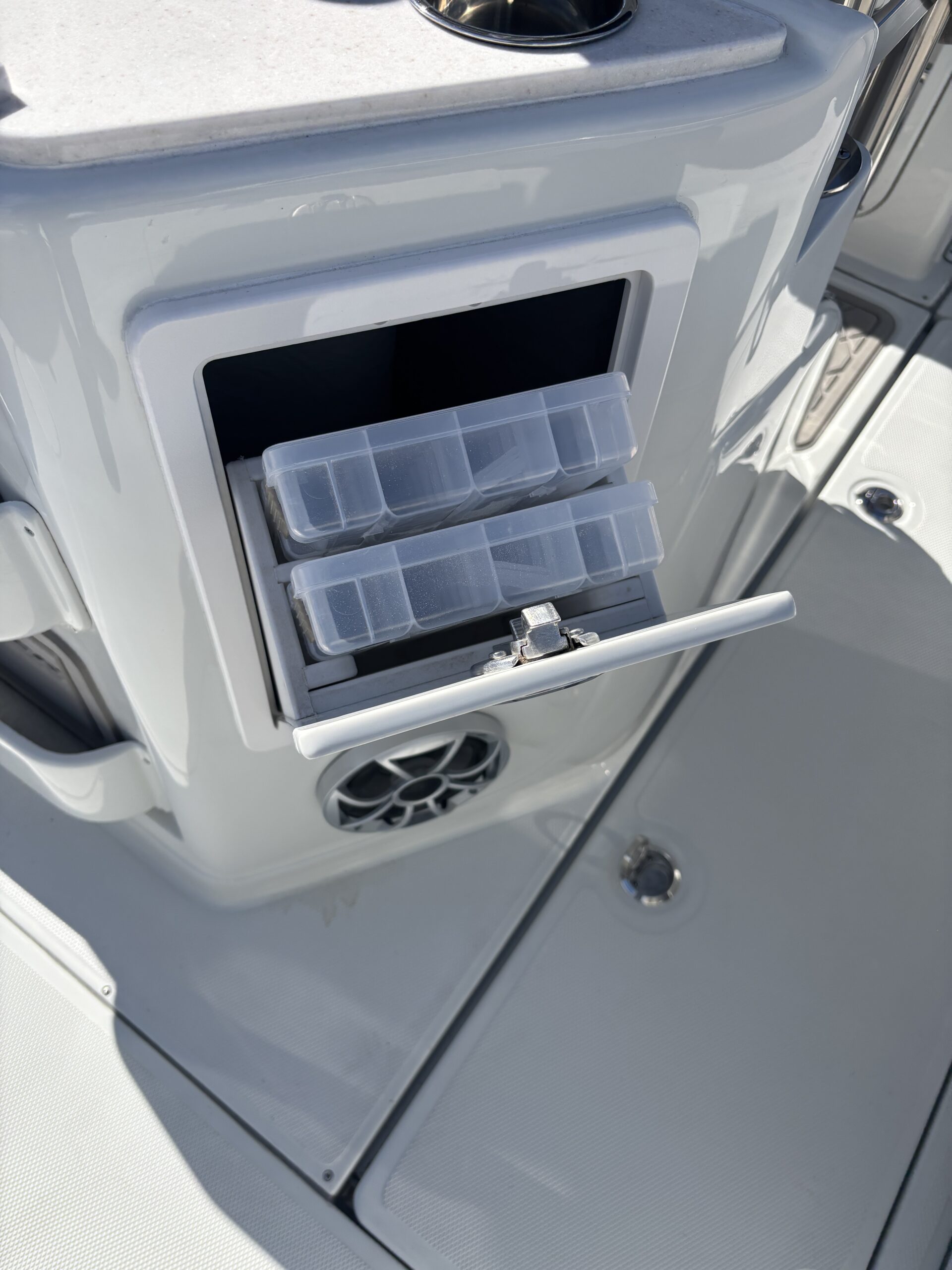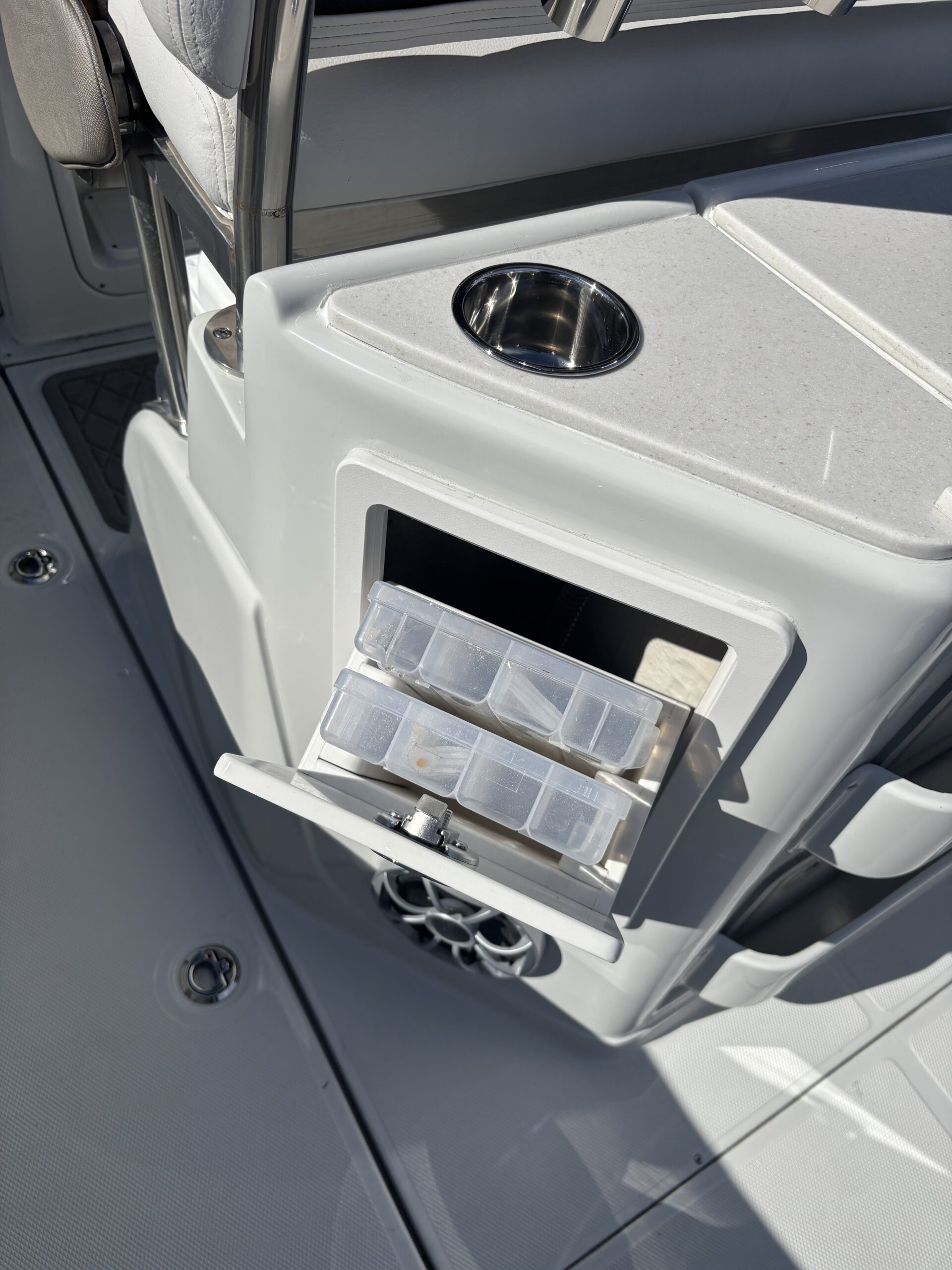 HANDLE BAIT STATION: ENLARGED SECONDARY FENDER CLIPS: 4 BASES w/4 INSERTS TRIM TABS w/INDICATORS HEAD: w/PUMP OUT